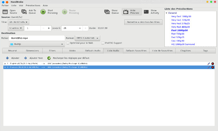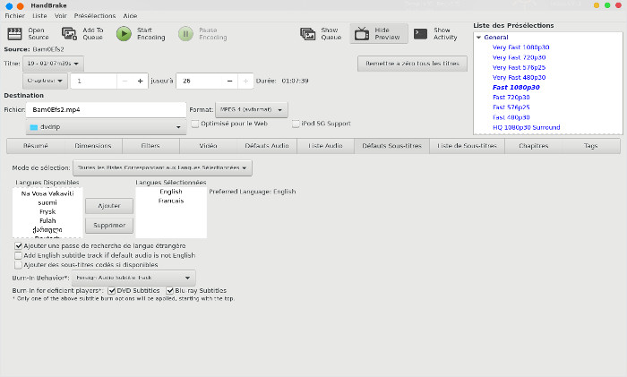 qui est très utile si vous souhaitez utiliser HandBrake