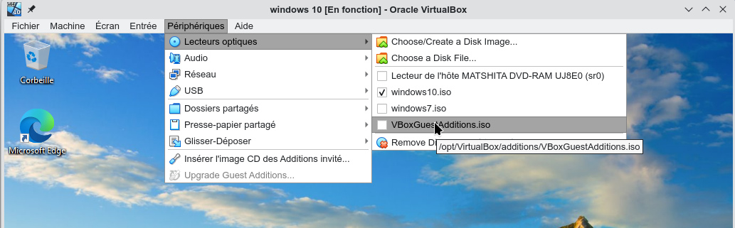 extensions à partir du menu Périphériques->Lecteurs