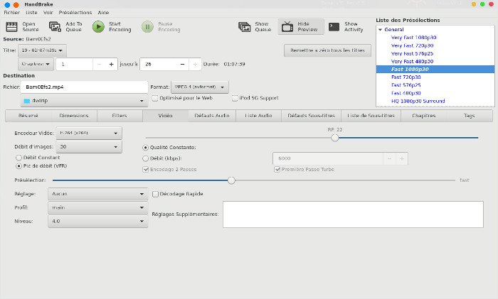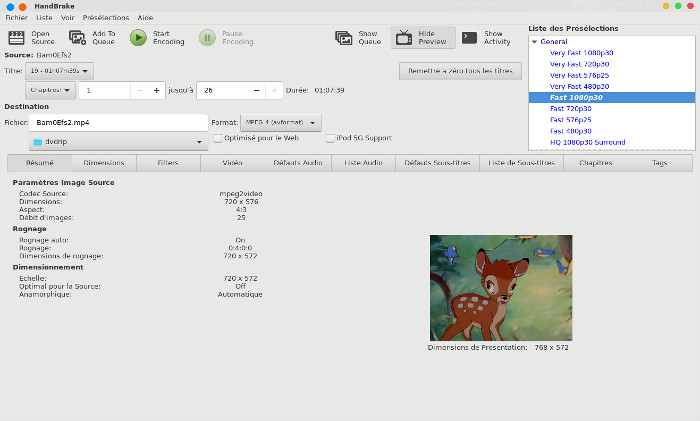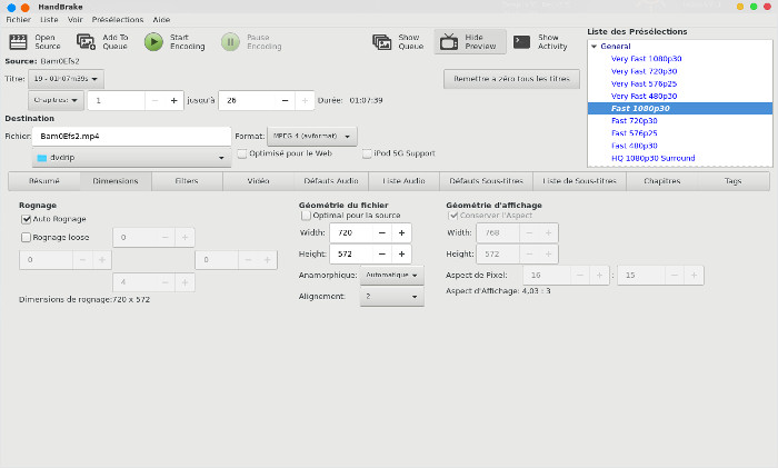 qui est très utile si vous souhaitez utiliser HandBrake