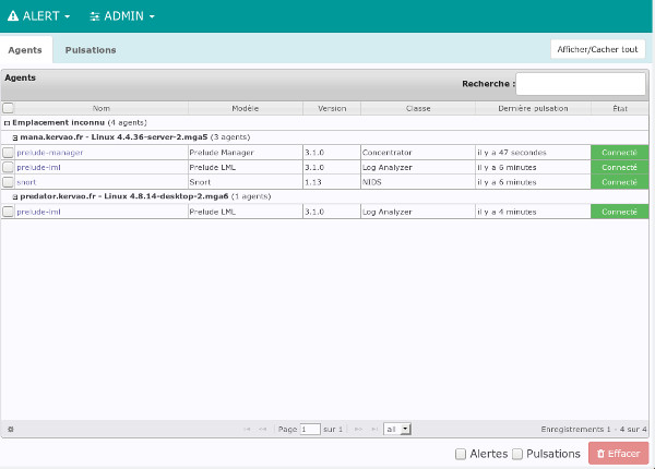 - (permissions) il existe plusieurs types de permission, idmef et admin qui peuvent avoir des droits en lecture (read r) ou écriture (w). Généralement une sonde a besoin d'un accès en écriture à la base (idmef:w) et en accès en lecture aux fichiers profils (admin:r)