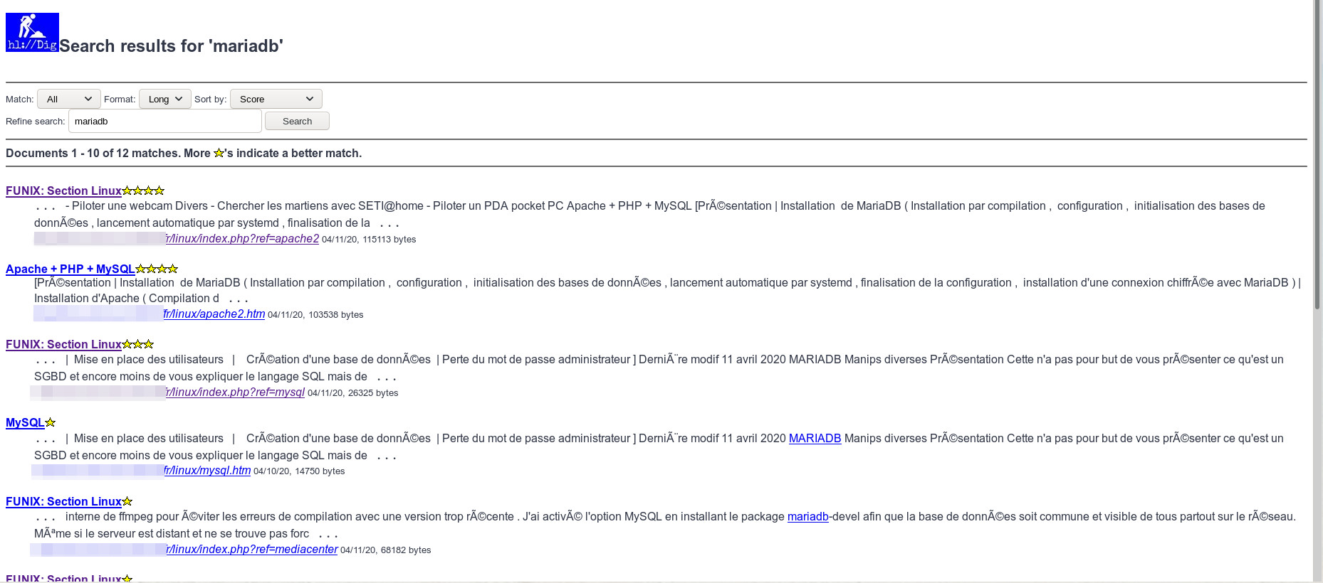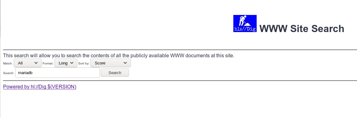 de recherche sous le répertoire htdocs/hldig d'apache dont