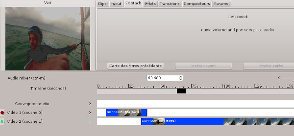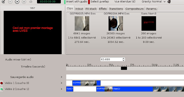 Clips, et il y a plus qu'à le glisser par drag and drop sur une piste en début de séquence, et voilà le résultat