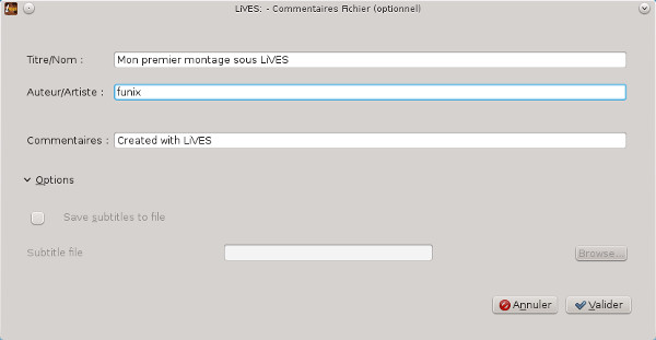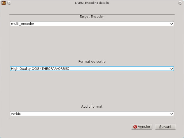 Fichier->Encode clip as... la fenêtre suivante apparaît, j'ai laissé les paramètres par défaut