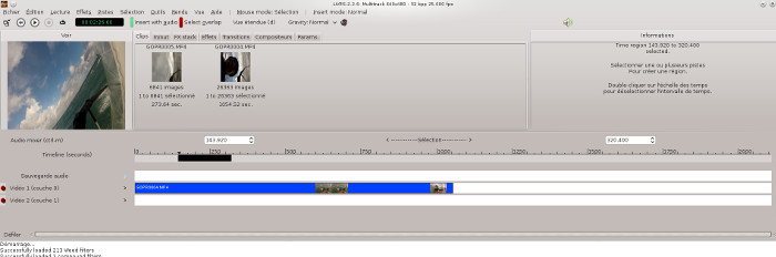 rouges), à partir de la timeline on sélectionne la région qui doit