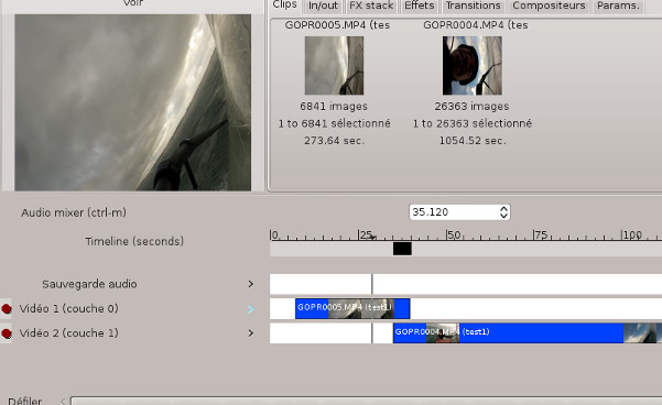 On fait en sorte que les deux pistes se chevauchent, dans la timeline