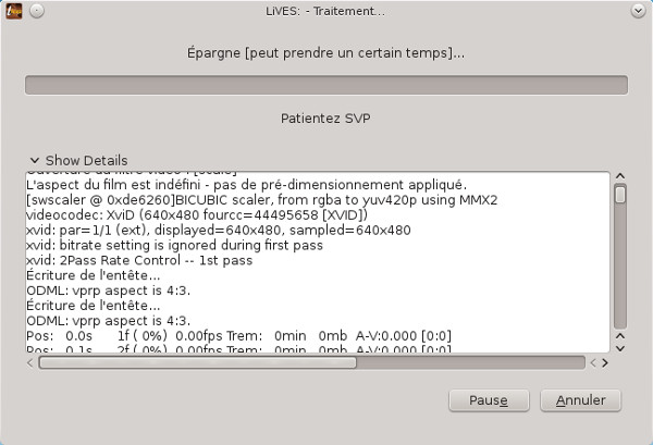 Valider, la fenêtre de traitement apparait, on peut afficher le détail du traitement en cliquant sur