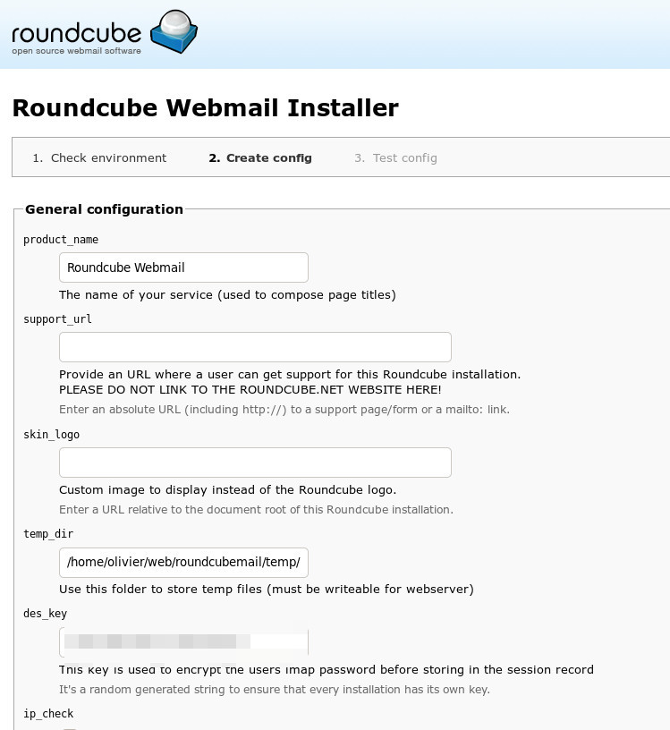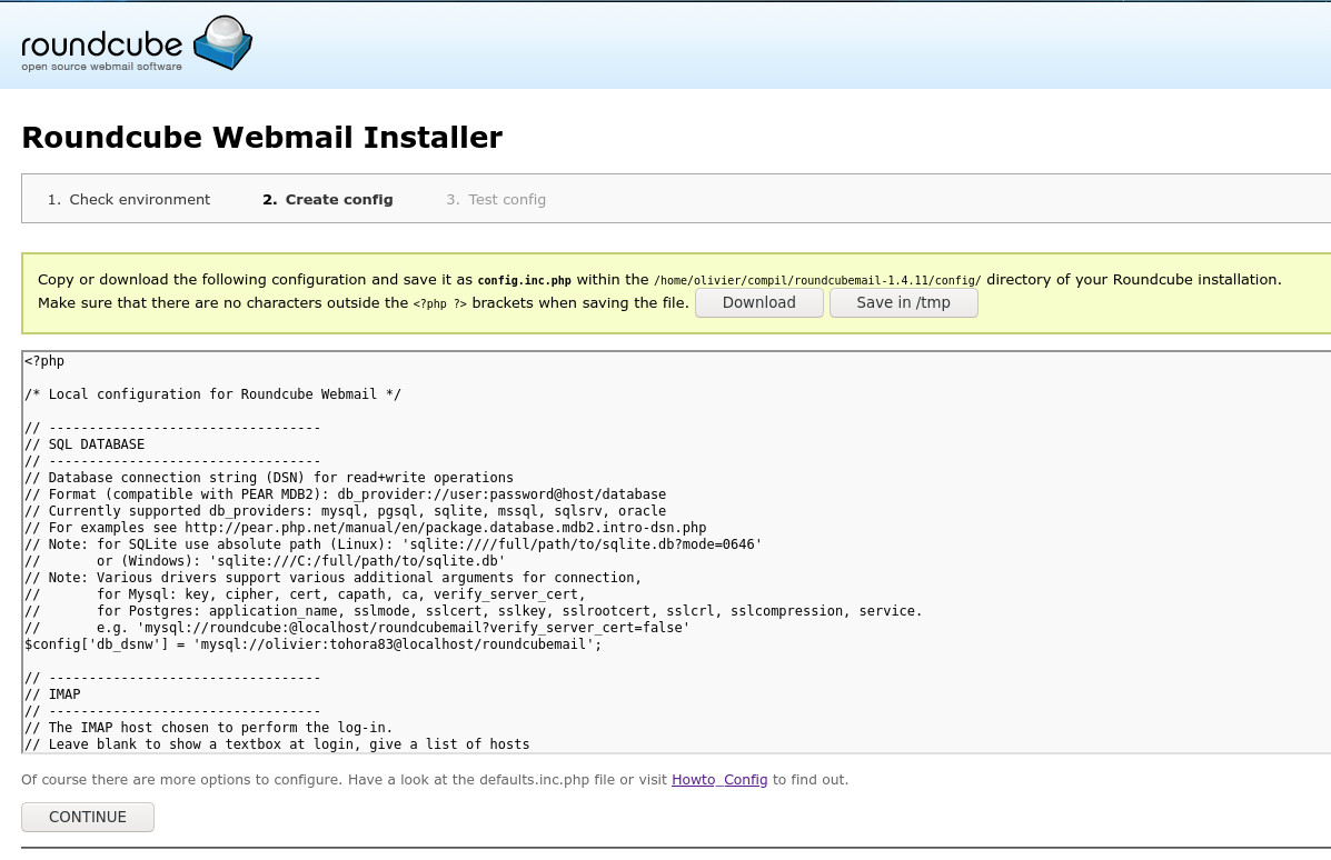 . writing /var/httpd/roundcubemail/config/config.inc.php...