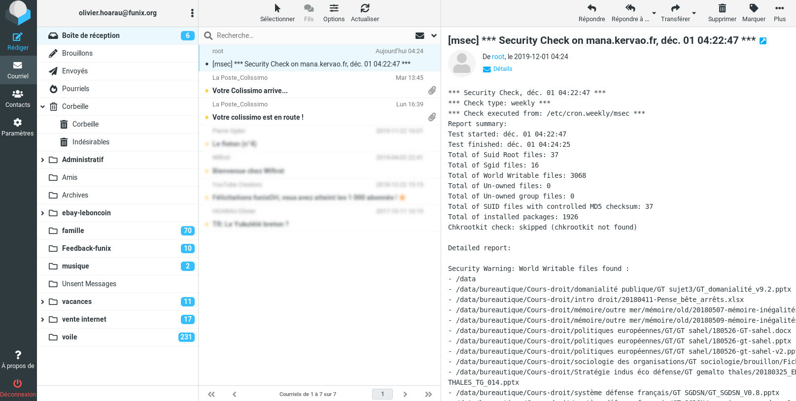 - le serveur webmail permet de gérer les mails via un navigateur, y compris d'un téléphone mobile, en toute indépendance, c'est à dire en hébergeant son propre serveur et ses dossiers de mails sans dépendre d'un quelconque google qui n'aura aucun scrupule à consulter vos mails. Pour cela il faudra rendre son serveur apache visible d'internet, tout l'intérêt de la manip est de rendre accessible d'internet que le serveur apache, il n'est pas nécessaire d'ouvrir les ports du serveur POP, IMAP ou SMTP.