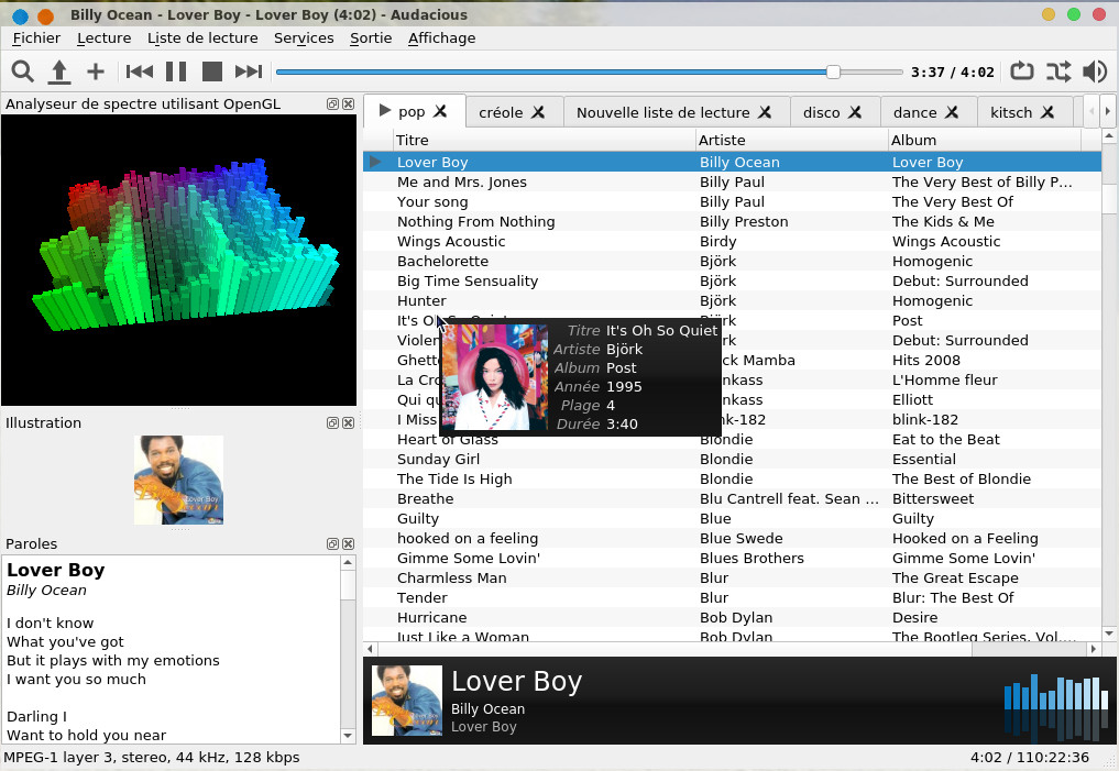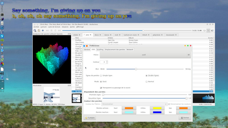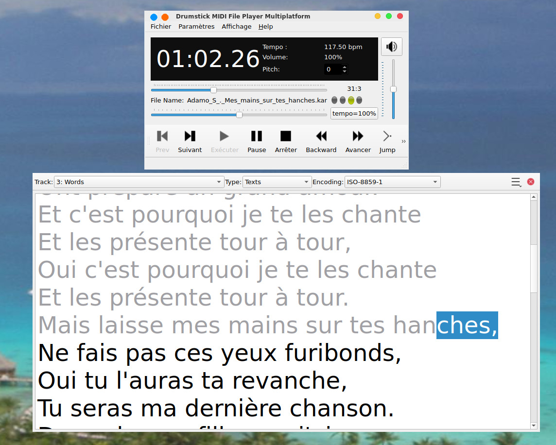 L'affichage du texte est évidemment synchronisé avec la chanson. On peut le configurer pour afficher 2 lignes et voir en avance de phase celle à venir.