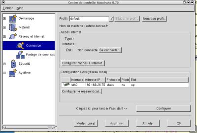 de la Mandrake, cliquez sur Configurer l'accès à internet.