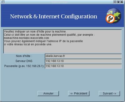Activation ou non du réseau IP masquerade activé ou pas Nom de l'hôte Nom du domaine Adresse de la passerelle (éventuellement) |