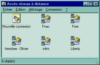 | Pour le nom de la connexion, référez vous au groupe Accès réseau à distance. Compte est le compte de connexion chez le FAI (Fournisseur d'Accès Internet) et password le password. | ![]() |
