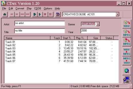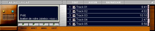 On doit choisir les tracks puis appuyez sur ENREG. . La première fois, on va passer par une phase d'initialisation du lecteur de CD-ROM, à ce moment là pour le test il faut mettre un CD audio qui ne doit pas être utilisé par une autre appli, une fois le test terminé, on clique sur OK, la conversion peut alors commencer.