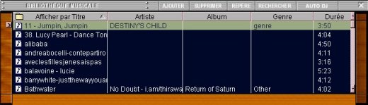 La deuxième fenêtre est la bibliothèque musicale avec une liste de musiques :