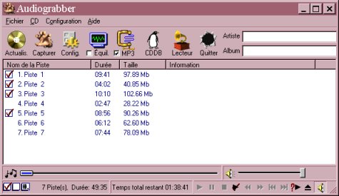 AudioGrabber ne possède pas d'encodeur MP3 natif, vous