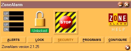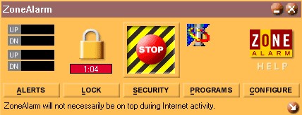 Noter que pour activer immédiatement le verrou, il suffit de cliquer dessus le cadenas sur la fenêtre principale de ZoneAlarm, la fenêtre prendra cette allure: