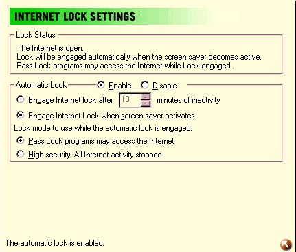 Pour autoriser les programmes à accéder à Internet même quand le verrou est actif, vous avez le bouton PROGRAMS.