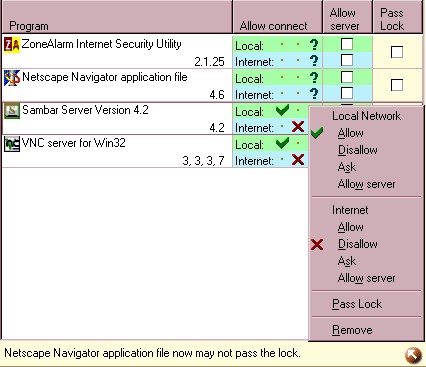 Pass Lock : quand le verrou est actif vous pouvez autoriser certains programmes à se connecter ou pas.