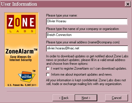 Je ne pense pas que ce soit capital pour le bon fonctionnement de ZoneAlarm.