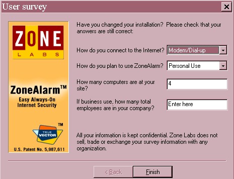 Vous vous servez de ZoneAlarm pour... avec le choix: utilisation